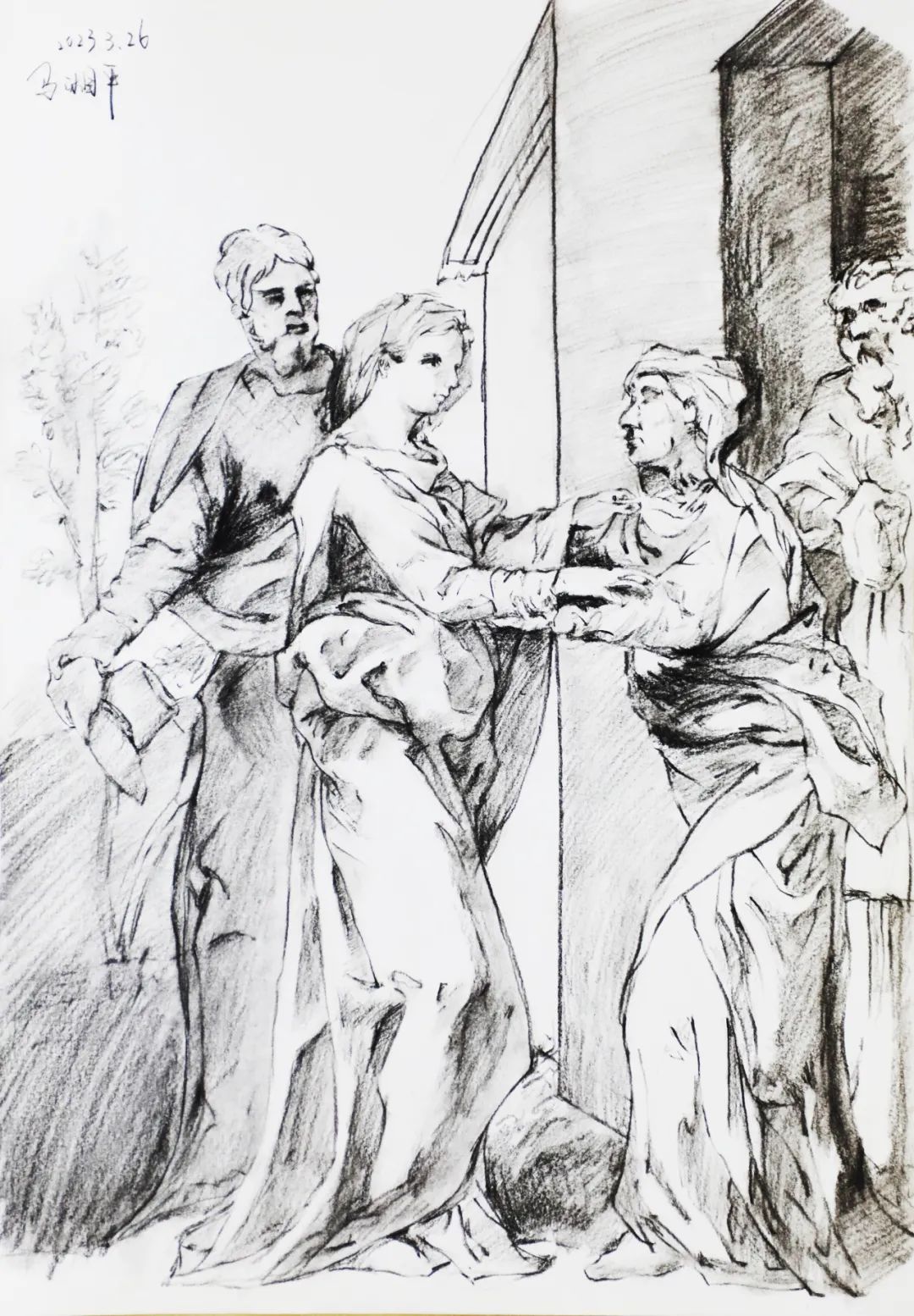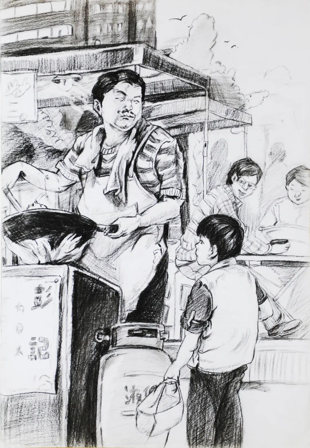 速寫(xiě)是一種相對(duì)快速的素描形式。所選學(xué)生速寫(xiě)作品畫(huà)面干凈,構(gòu)圖舒適,線(xiàn)條流暢度高,疏密、粗細(xì)、虛實(shí)變化表現(xiàn)好,體積感強(qiáng),人物造型動(dòng)態(tài)比例準(zhǔn)確,畫(huà)面節(jié)奏感、黑白灰處理明確,速寫(xiě)味濃。
