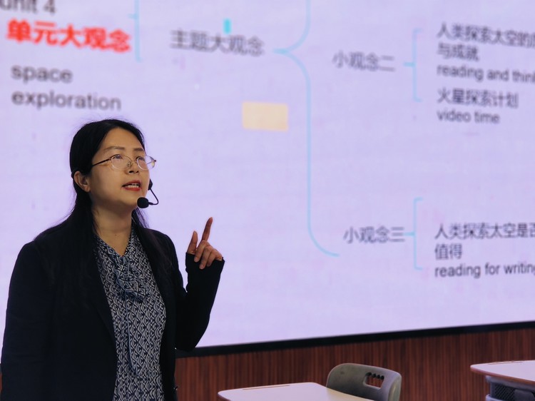 接著,長壽中學(xué)譚曉娟老師說課《Unit 4 Space Exploration ——Listening and Speaking》。譚老師深刻地分析了單元大觀念教學(xué)和實際教學(xué)金幣貼合的實際,特別是針對聽力教學(xué)方面,提出了自己的真知灼見。