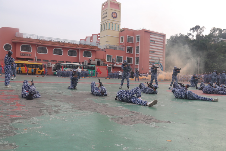 整齊肅穆的方陣、氣勢磅礴的口號、剛勁有力的擺臂、步調(diào)一致的踢腿,舉手投足間,既透出軍人堅毅果敢的氣質(zhì),又彰顯著標(biāo)尚學(xué)子昂揚(yáng)向上的精神風(fēng)貌,贏得了在場領(lǐng)導(dǎo)、教師和家長的陣陣掌聲。