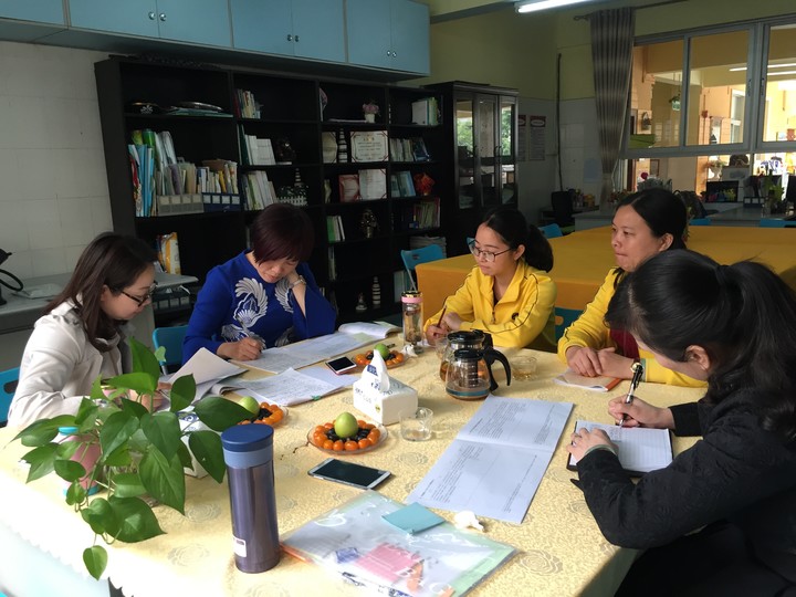 今天三位視導員們早上八點前就到了我園,隨機抽到大一班,對照《創(chuàng)建手冊》聆聽著孩子們與老師、孩子之間的互動交流;對班級的學習環(huán)境、一日生活安排、師幼互動情況等進行了細致、認真的觀察。中午一點鐘,視導們與大一班的教師、我園教學園長及教學主任依次進行了親切會談,進一步了解幼兒園管理、制度、課程等相關(guān)情況,關(guān)對幼兒園在學習環(huán)境、一日生活、學習活動、管理文化四個方面的優(yōu)質(zhì)示范等級創(chuàng)建工作給予觀察反饋與指導。