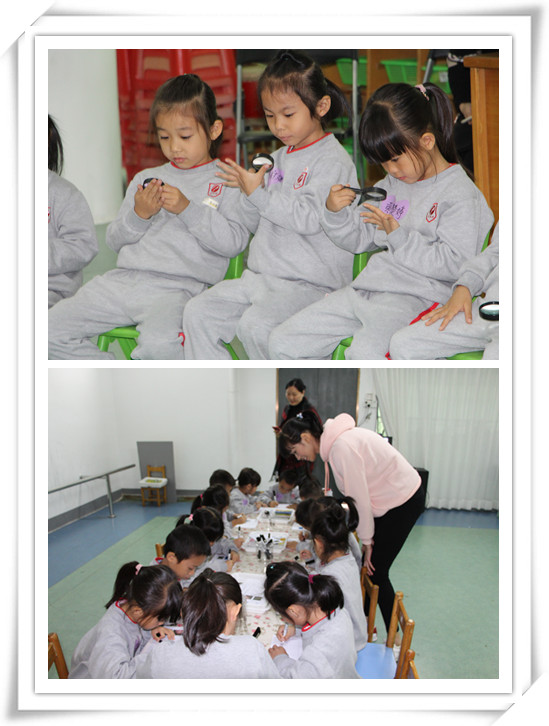 哦,原來呀這是我們手指上的指紋,每個人的指紋都是不一樣的,我的手指上有小漩渦,你有嗎?